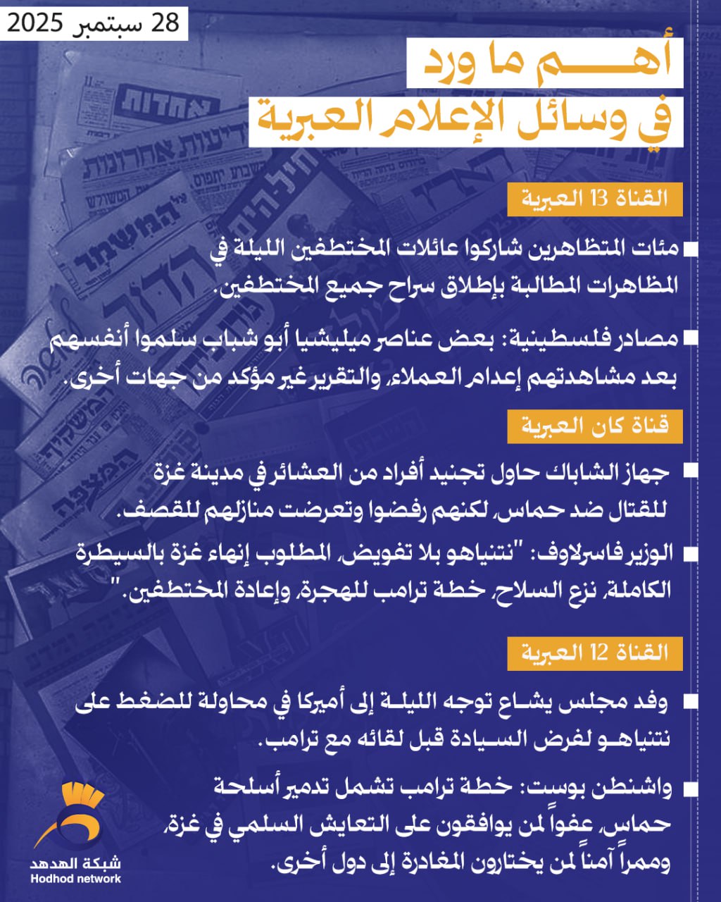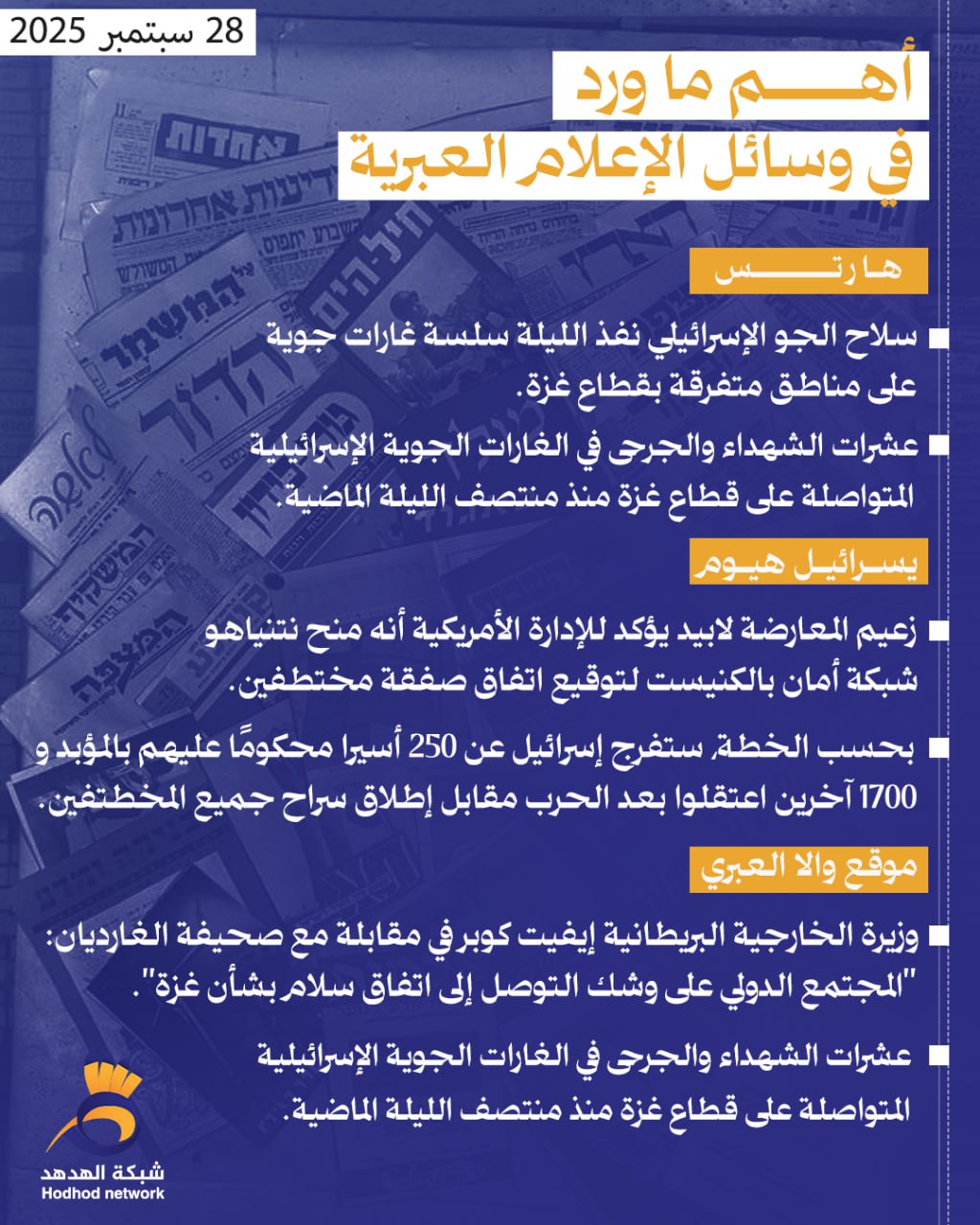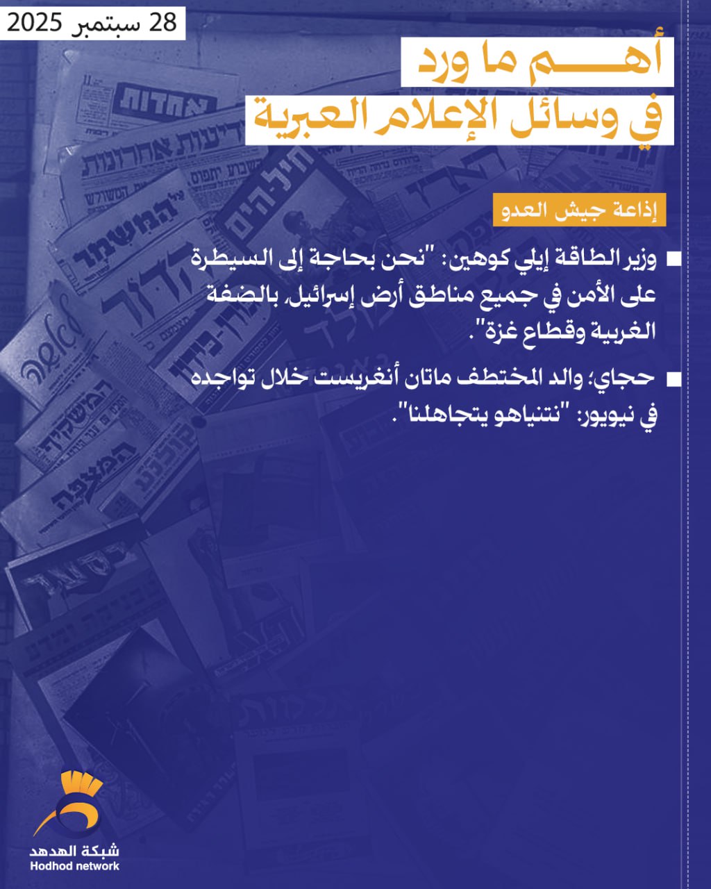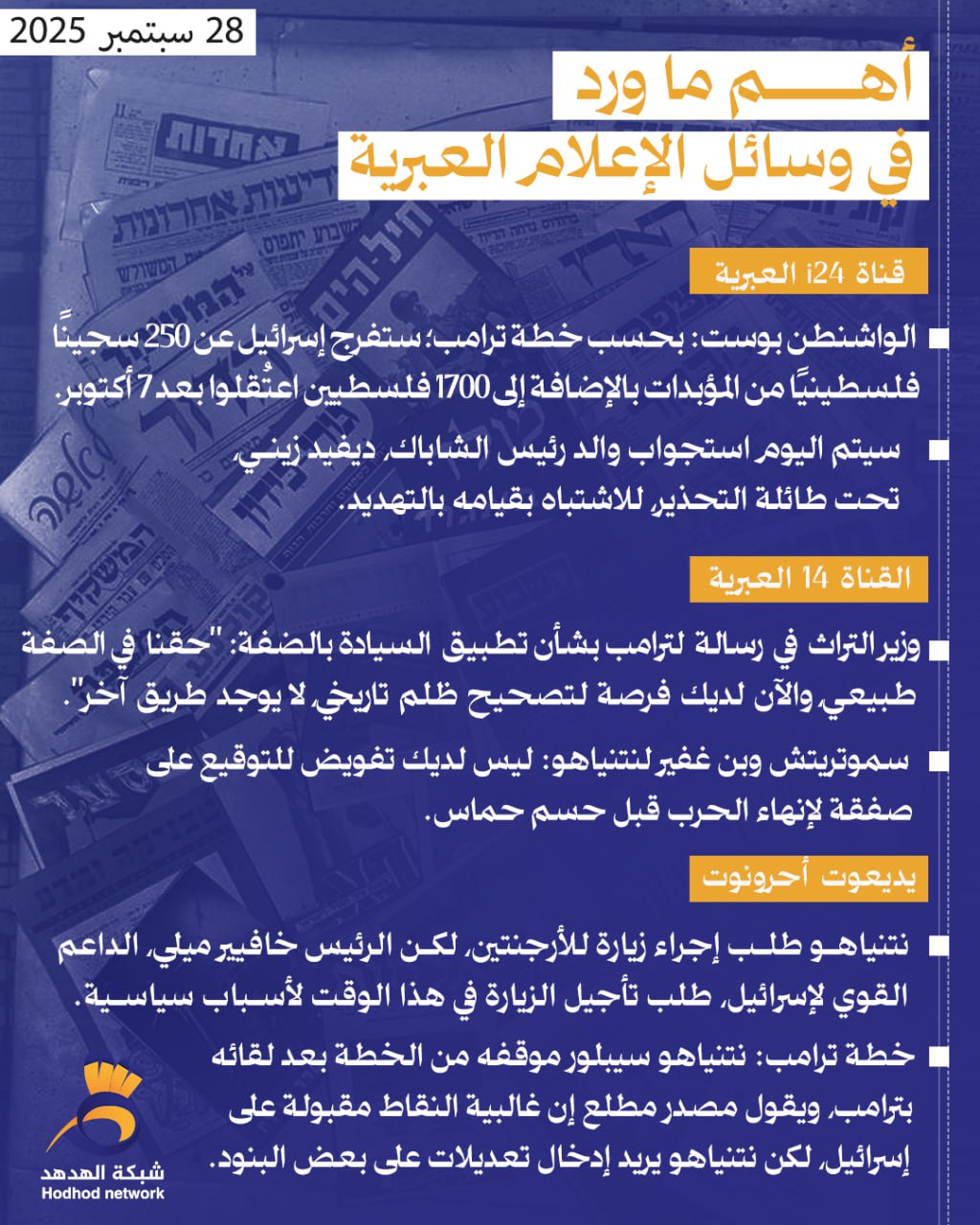 أبرز عناوين وسائل الإعلام العبرية صباح اليوم الأحد 28/سبتمبر/2025